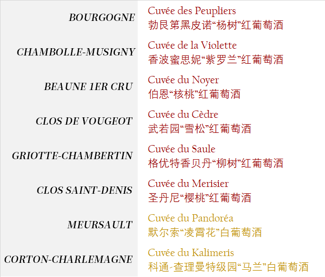 此外,他还与多位勃艮第金丘最优秀的酒农密切合作,购买葡萄或酒汁进行酿造与熟化——酒商业务是他新事业的重头戏,包括近20款酒,涵盖大区到特级园所有等级,数量每一年都在增长。